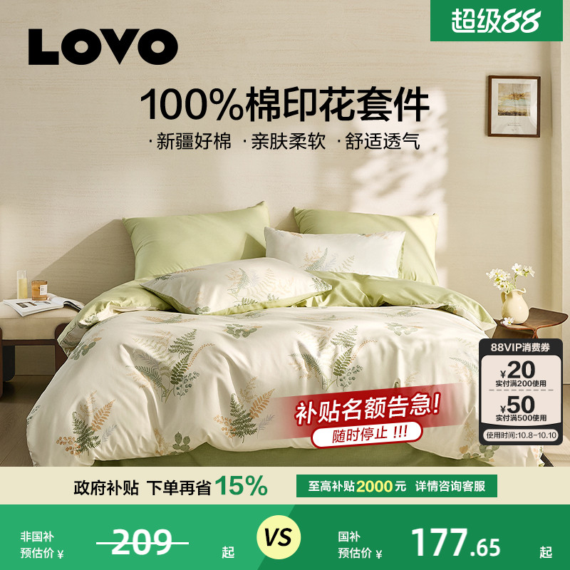 罗莱家纺LOVO乐蜗床单床上四件套床品100棉全棉纯棉被套学生宿舍