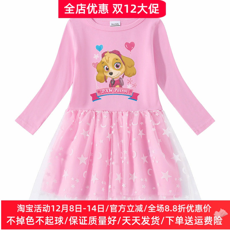汪汪队天天衣服女童长袖连衣裙儿童纯棉网纱公主裙子女宝宝秋装潮
