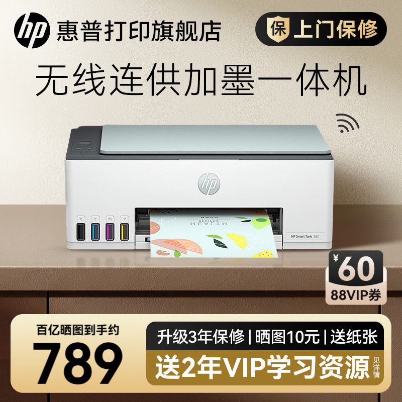 惠普Smart Tank 582墨仓式彩色家用小型打印机复印扫描一体机喷墨可连接