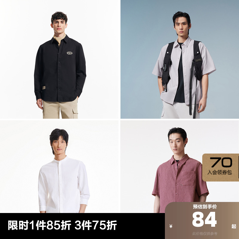 【衬衫清仓】杰克琼斯男装奥特莱斯男士休闲商务长袖短袖衬衫