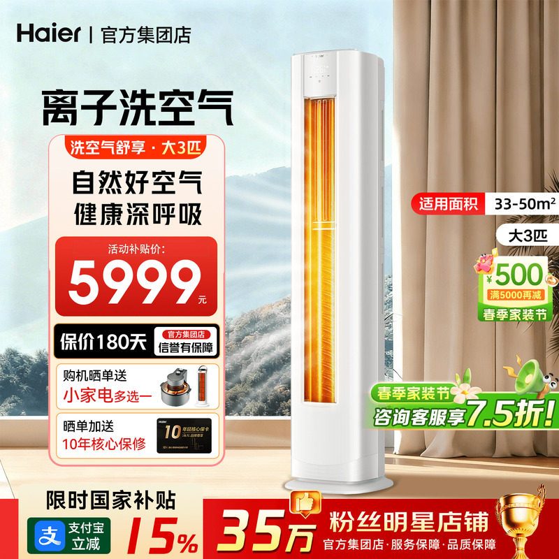 海尔空调洗空气麦浪舒享款家用3匹新一级变频新品柜机72E3旗舰店