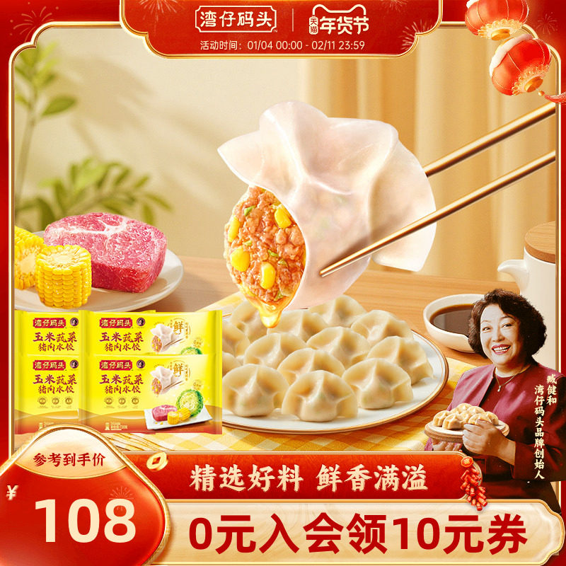 湾仔码头水饺玉米三鲜白菜猪肉720g*4袋煎饺早餐速冻饺子