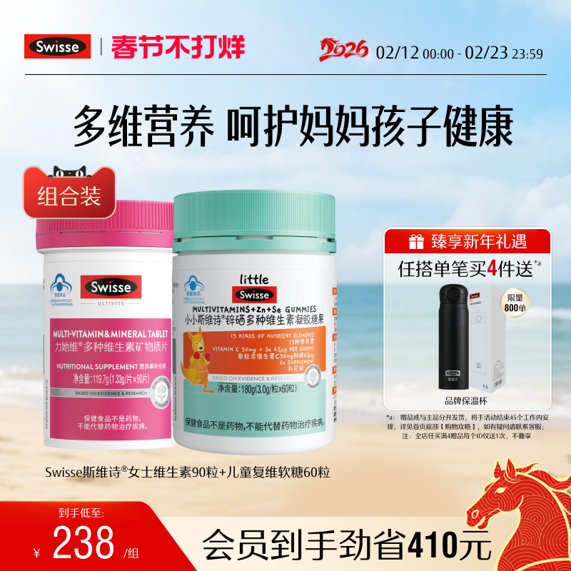 Swisse斯维诗蓝帽儿童复合维生素补锌男女士维生素e维b免疫力官方
