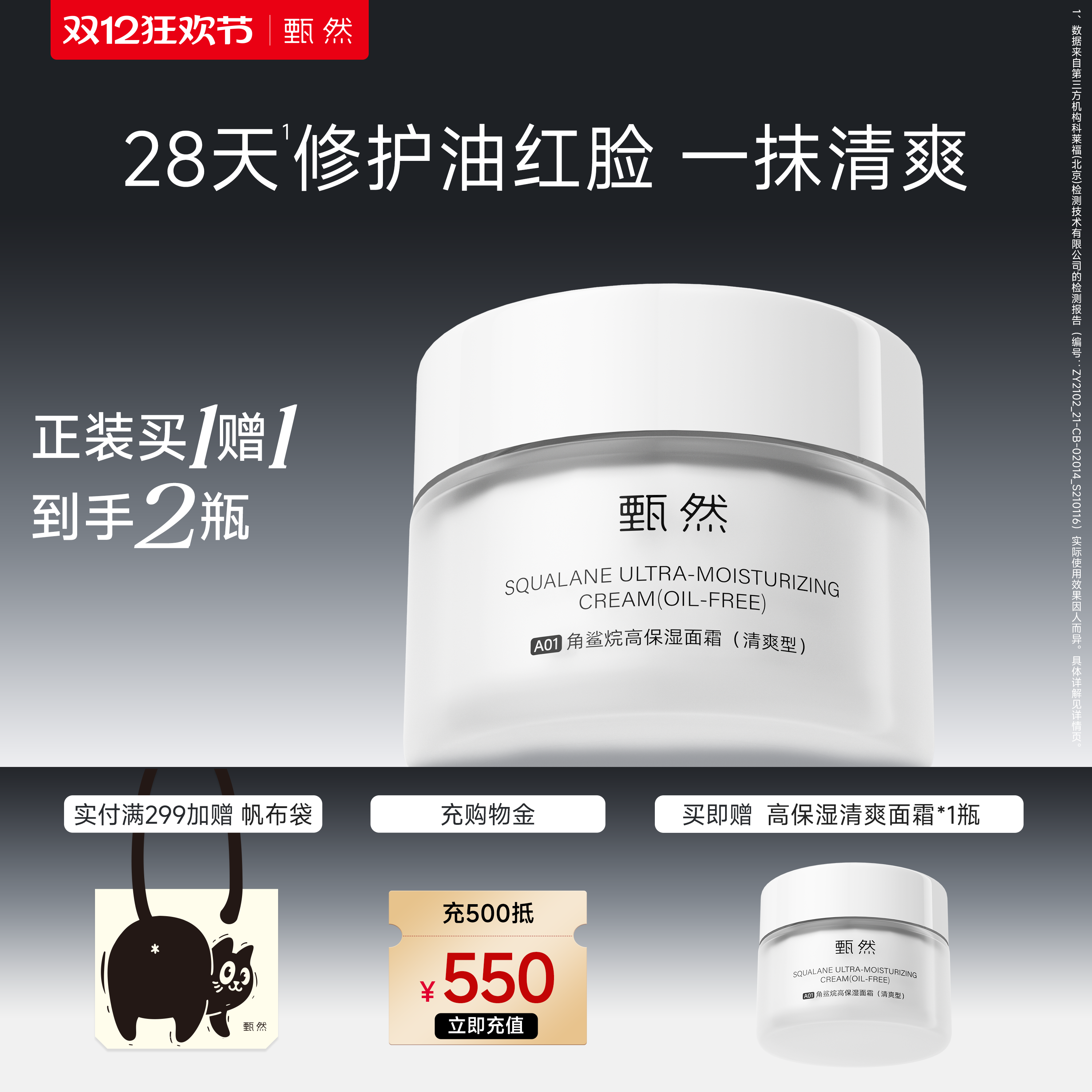 【速抢购!】甄然修护舒缓角鲨烷高保湿清爽面霜50g油皮果冻啫喱霜