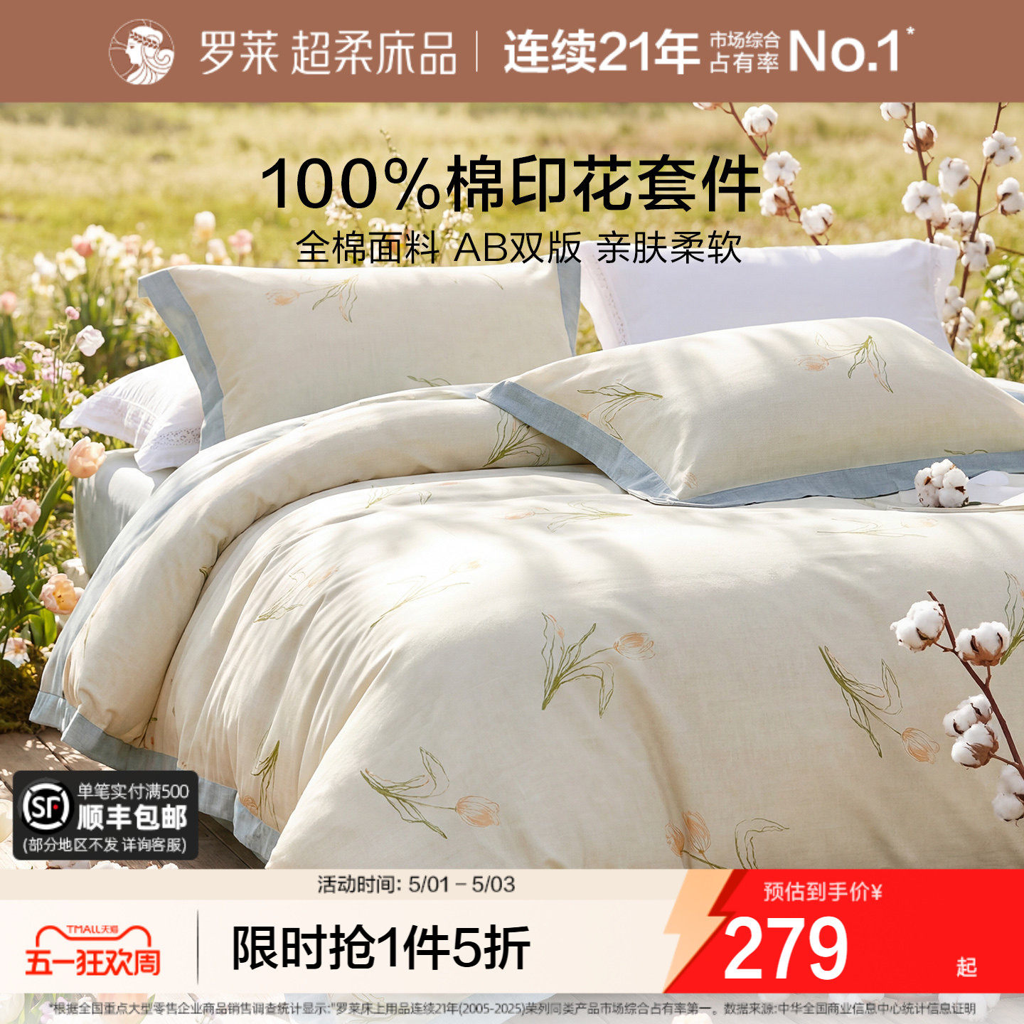罗莱家纺床上四件套全棉纯棉被套床单床笠被罩双人棉套件宿舍