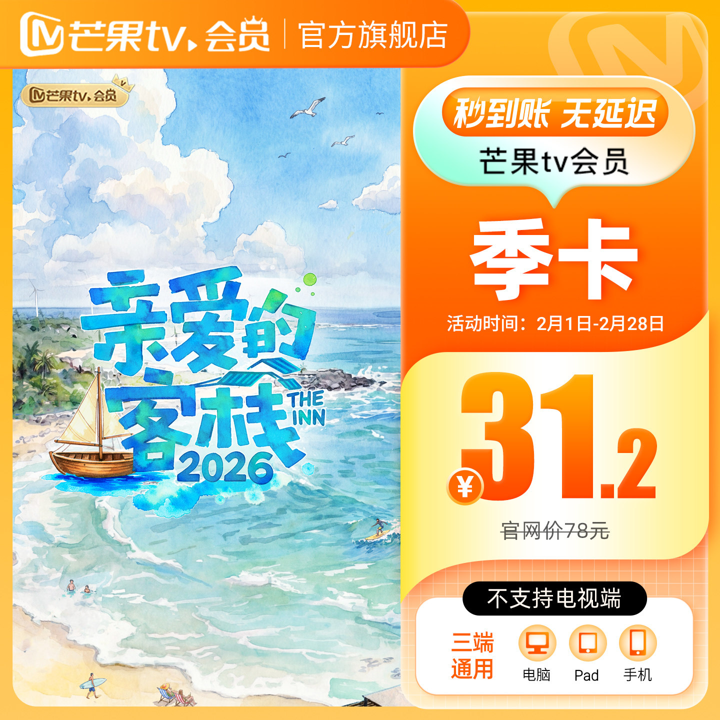 【季卡限时31.2元】芒果TV会员3个月 芒果VIP会员季卡 亲爱的客栈