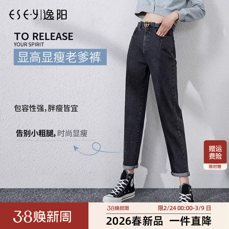 逸阳牛仔裤宽松2026春季新款老爹裤宽松显瘦高腰深色哈伦萝卜长裤
