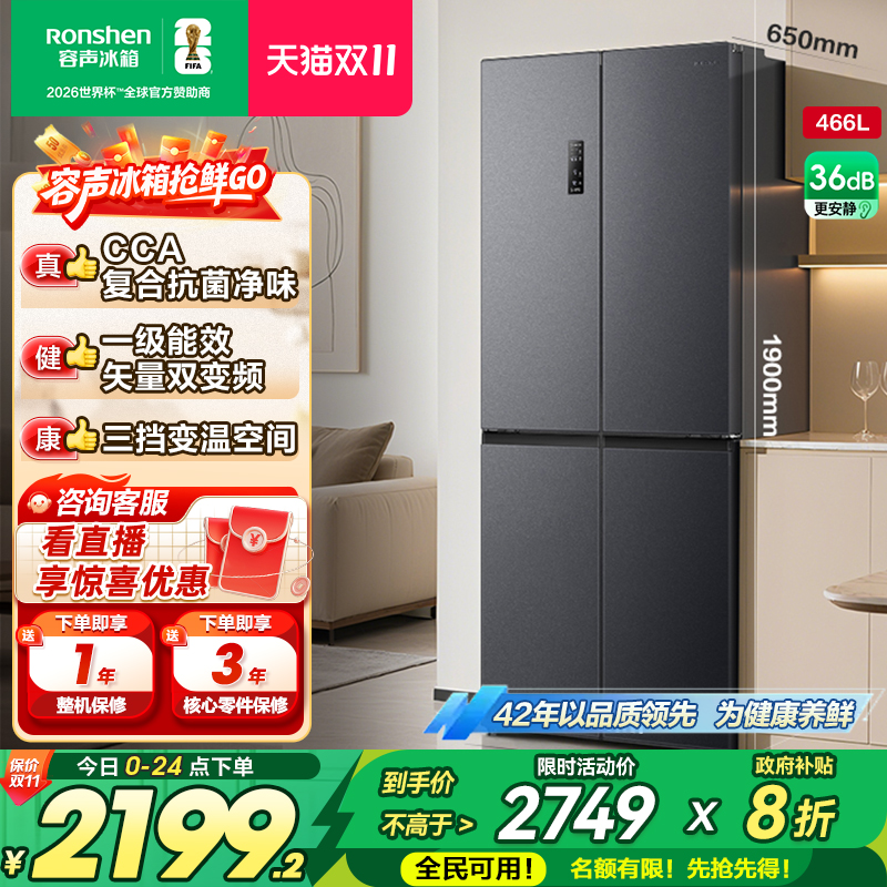 容声466/465十字双开门大容量四门冰箱家用官方一级变频风冷无霜