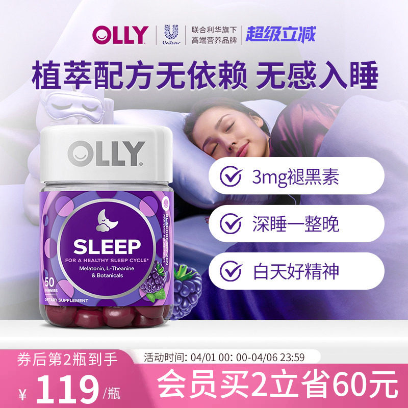 OLLY褪黑素软糖晚安瓶助非睡眠片gaba茶氨酸sleepwell退黑素进口