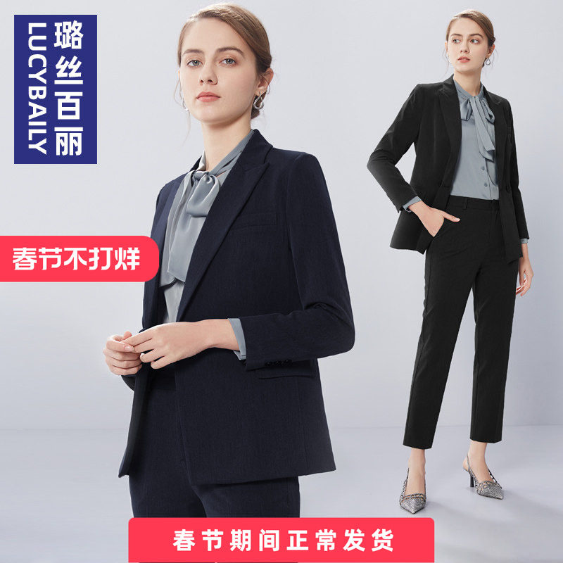 璐丝百丽藏蓝色西装套装女气质时尚2025年春秋新款洋气西服职业装