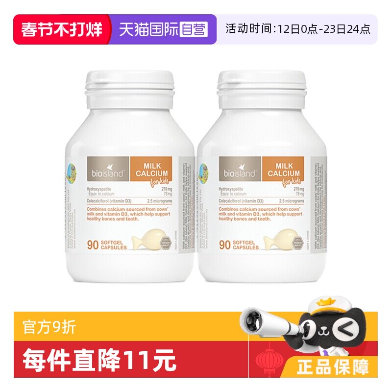 【自营】bioisland/佰澳朗德澳洲VD牛乳钙软胶囊婴幼儿童90粒*2瓶