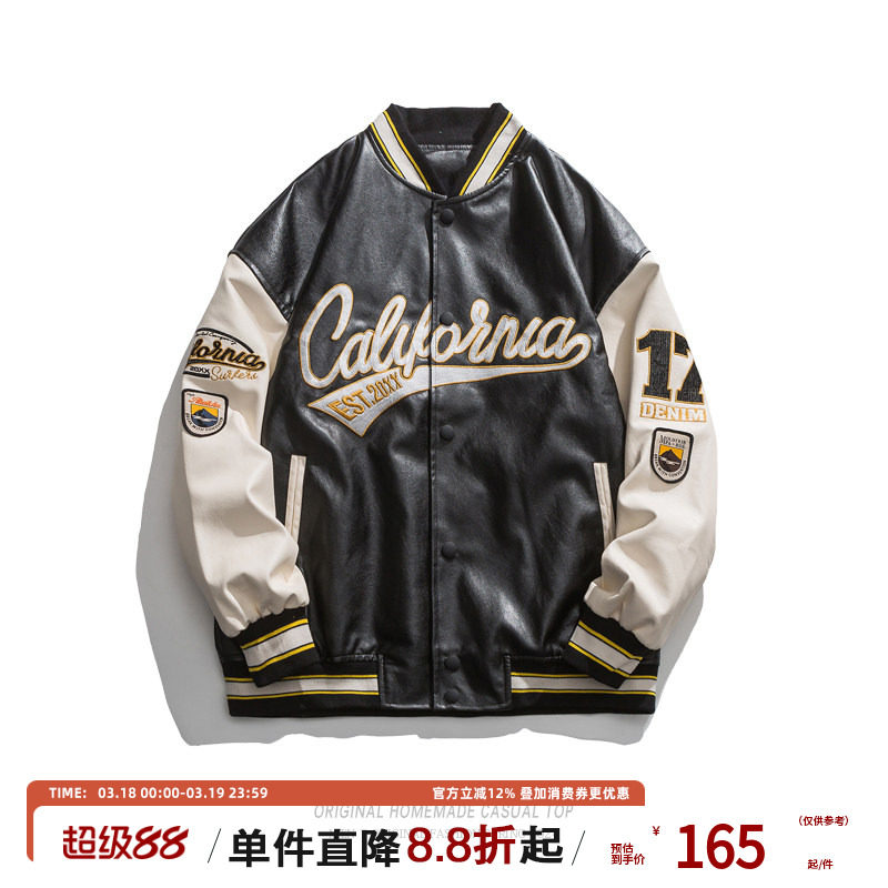 潮牌PU皮衣棒球服男春秋季宽松情侣飞行员夹克男街头情侣休闲外套