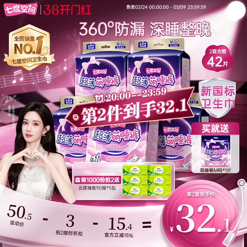 【新国标认证】七度空间萌睡裤安睡裤女经期防漏安心裤卫生巾