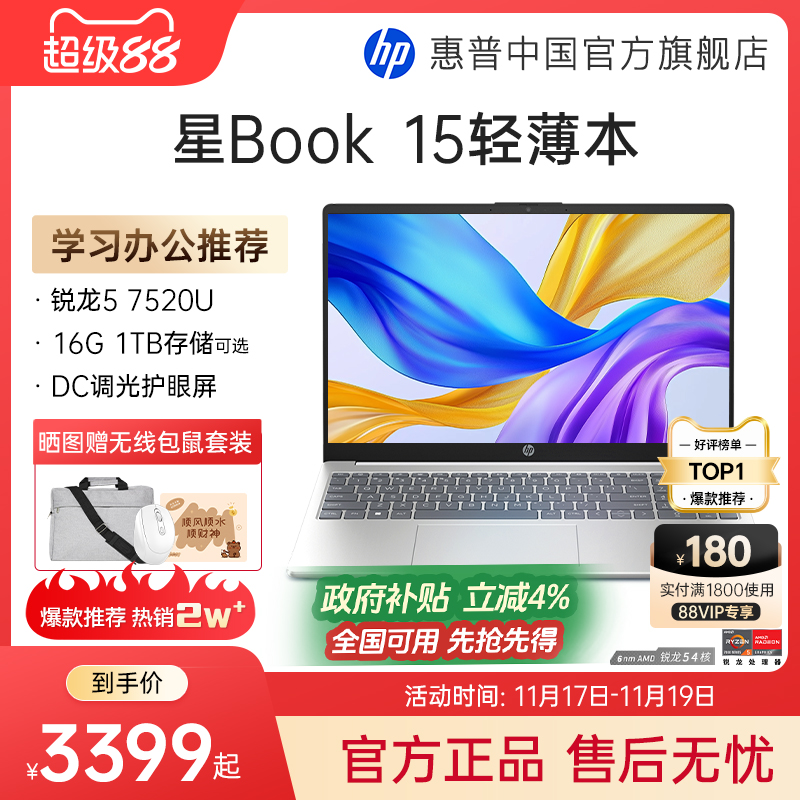 HP/惠普可选星Book 14/15锐龙 7000系R5处理器轻薄本笔记本电脑轻
