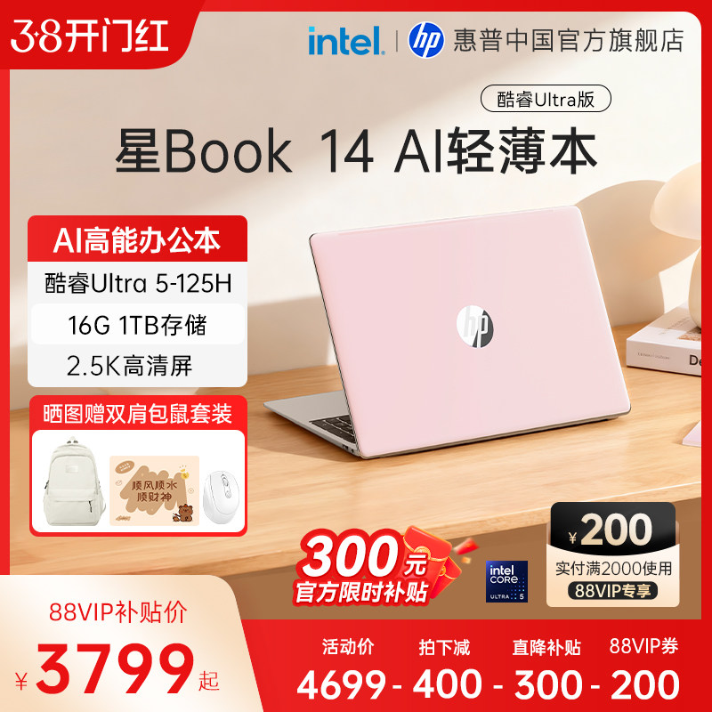 • 泡美丽»»【国家补贴15%】HP/惠普可选星Book Pro14英特尔酷睿ultra5轻薄