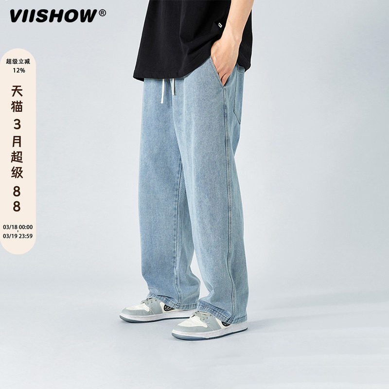 VIISHOW牛仔裤男春秋潮牌宽松美式浅色复古垂感休闲长裤直筒裤子