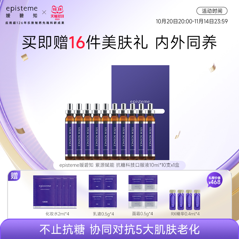 日本乐敦episteme嫒碧知 胶原弹力小紫瓶抗糖口服液10ml*10支*3盒