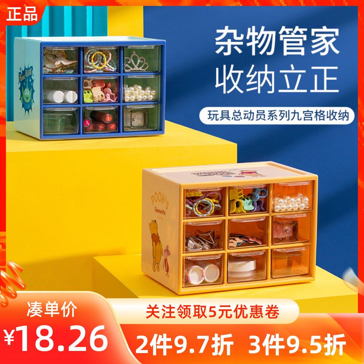 miniso名创优品小熊维尼三眼仔多格收纳盒九宫格抽屉储物收纳盒子