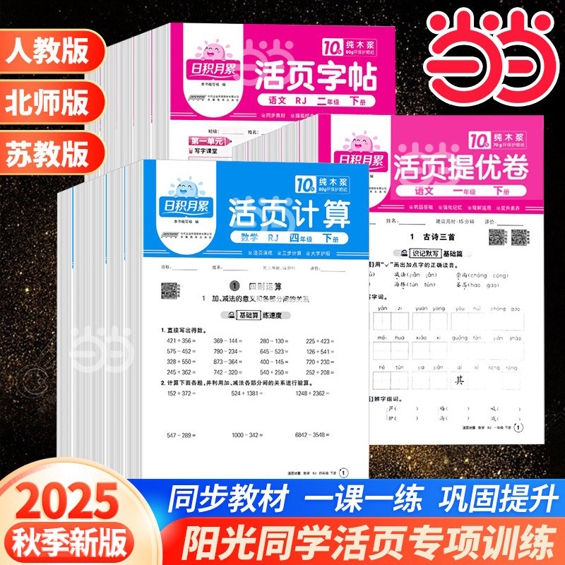 当当网2025秋25春阳光同学活页提优卷语文数学活页默写活页计算活页练字帖全套人