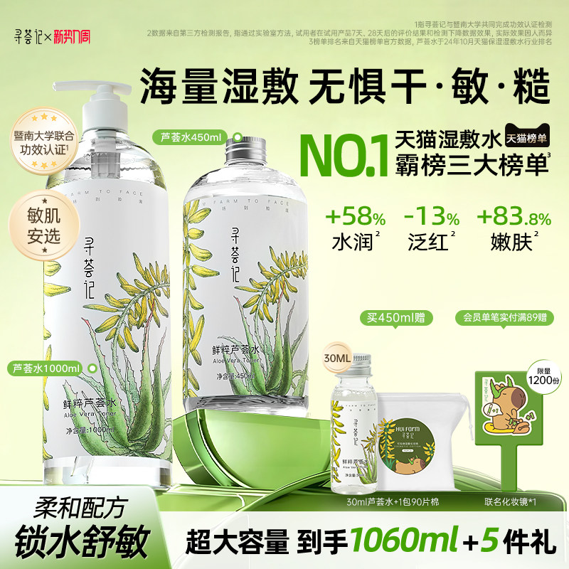 寻荟记芦荟水湿敷保湿爽肤水补水喷雾舒缓褪红清爽化妆水护肤水乳