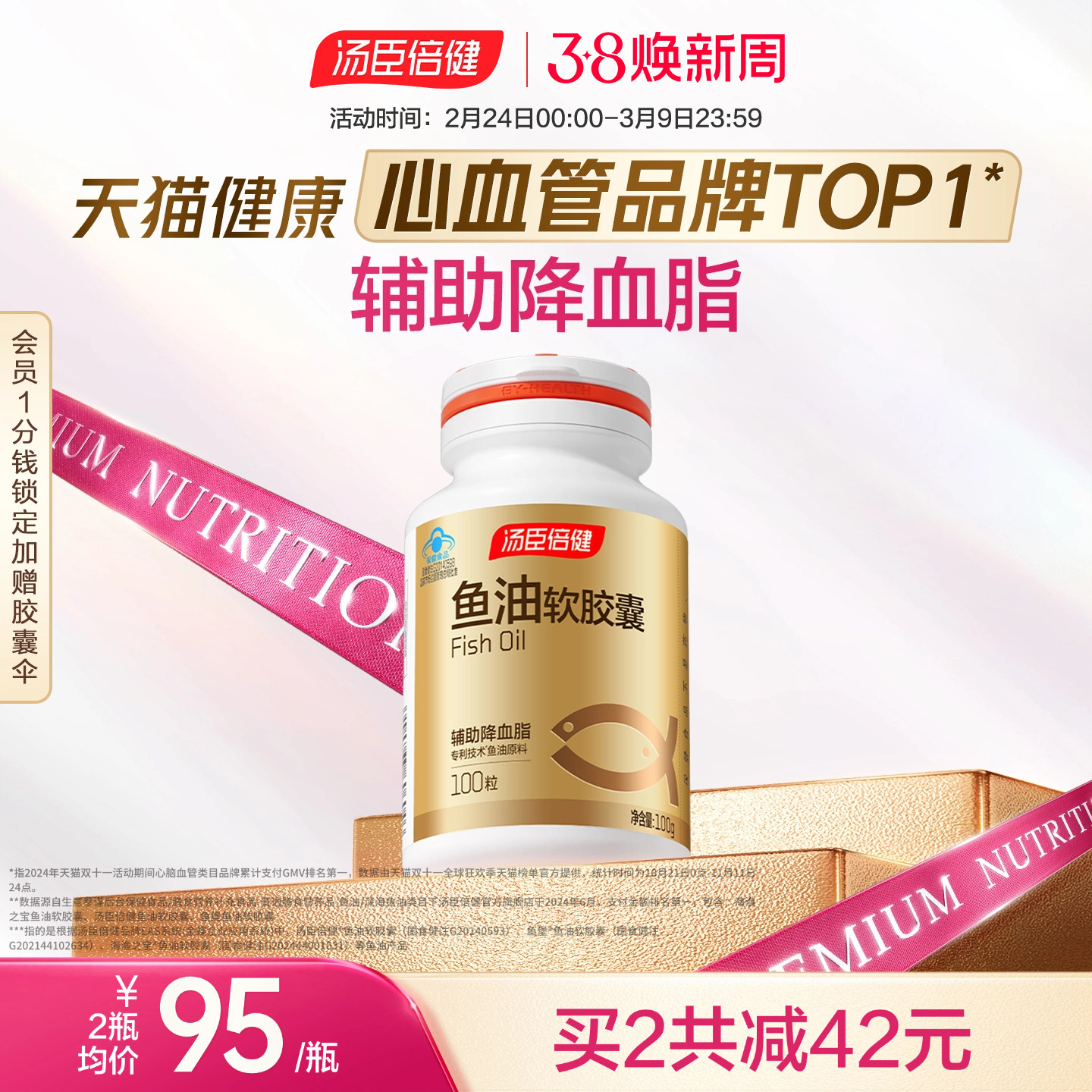 • 泡美丽»»汤臣倍健鱼油软胶囊中老年辅助降血脂成人健身深海鱼油DHAepa正品