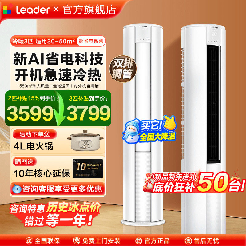 新品海尔空调大3匹Leader柜机2P立式空调客厅一级能效家用旗舰店
