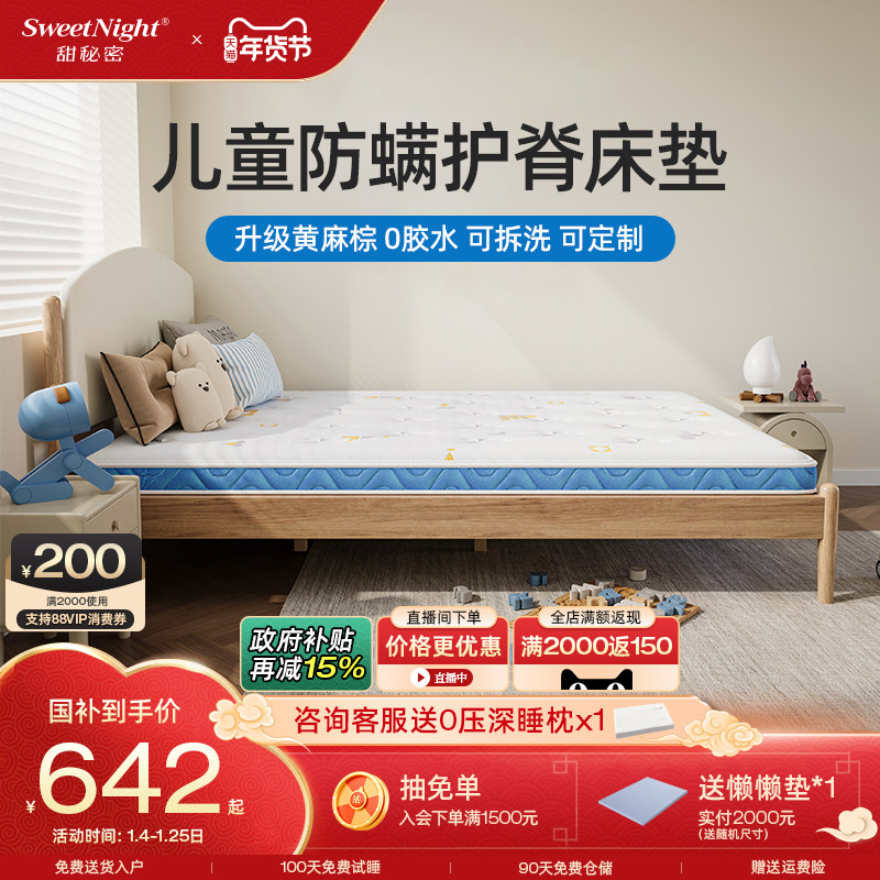 sweetnight甜秘密儿童床垫护脊专用无甲醛超标硬椰棕防螨乳胶定制