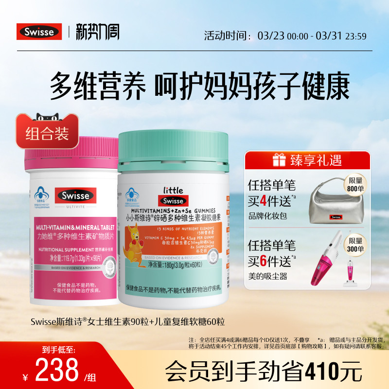 Swisse斯维诗蓝帽儿童复合维生素补锌男女士维生素e维b免疫力官方