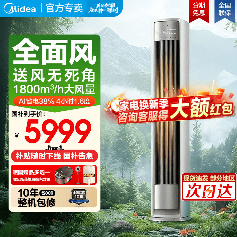 [25年新品]美的全面风空调新一级变频家用大3匹2p立式柜机风尊2代