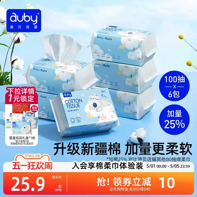 澳贝闭眼熊棉柔巾干湿两用洗脸巾新生婴儿手口专用宝宝纸巾非湿巾