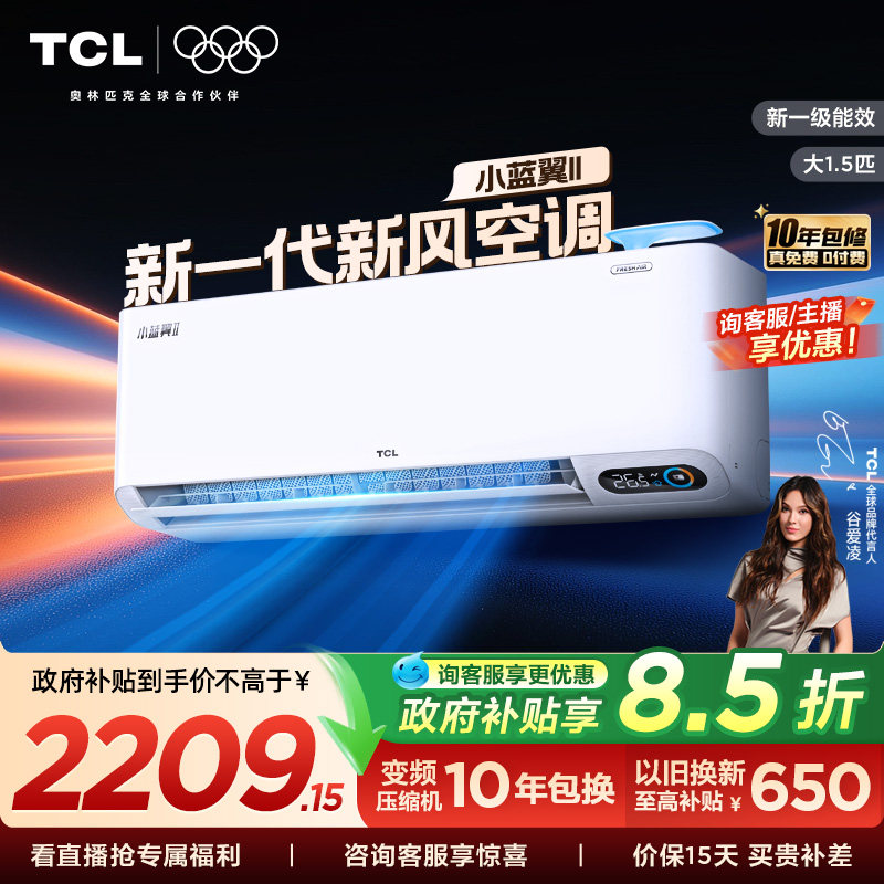 TCL 大1.5匹小蓝翼Ⅱ新风空调挂机60m³/h大新风量新一级能效变频
