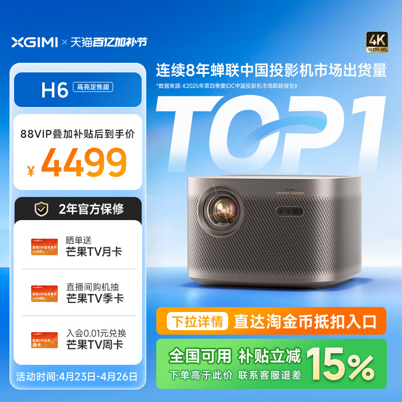 • 泡美丽»»【政府补贴】极米H6高亮定焦版4K家用投影仪超高清高亮度智能投影机卧室客厅大屏