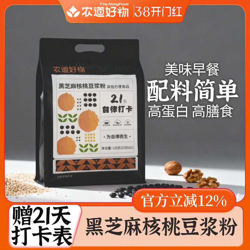 农道好物无糖黑芝麻糊核桃豆浆黑豆粉豆浆粉五黑粉代餐粉黑芝麻粉