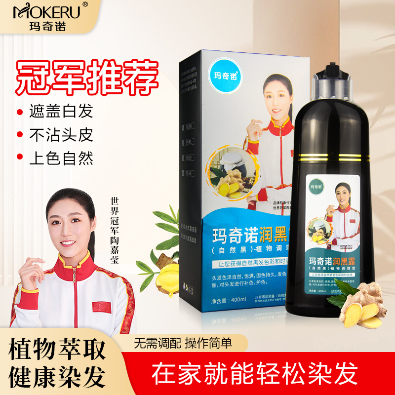 玛奇诺森杉姜一支黑染发剂植物纯黑茶色一洗黑不刺激遮白发染发膏