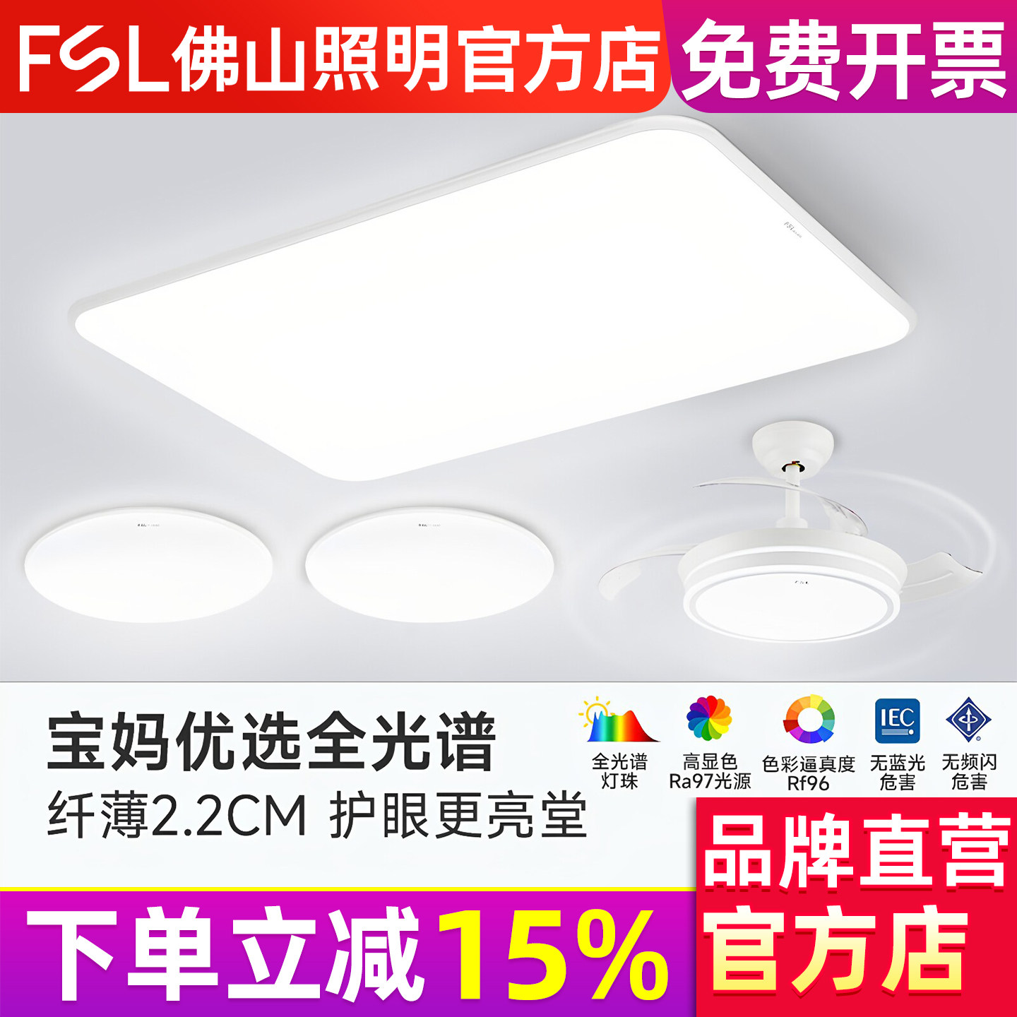 FSL 佛山照明官方店现代简约2023新款客厅灯吸顶灯具全屋组合套餐