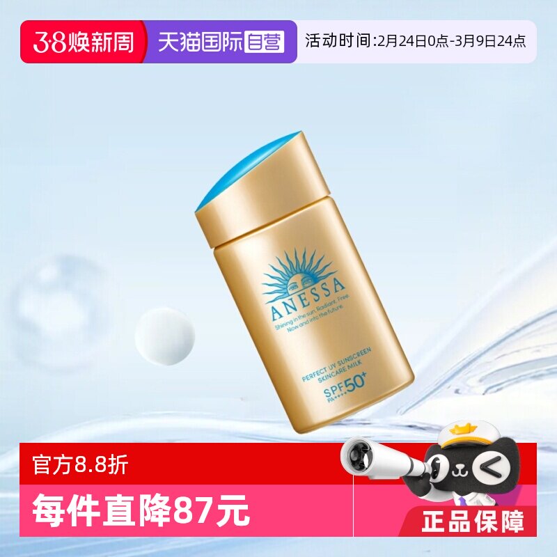 【自营】安热沙安耐晒防晒霜60ml经典小金瓶面部全身防水防紫外线