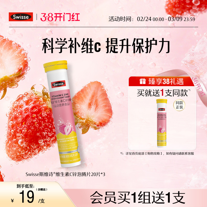 Swisse斯维诗维生素C锌泡腾片高浓度VC片补充维C提升自护力旗舰店