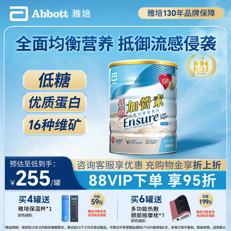 雅培ensure港版低糖加营素进口成人高钙蛋白奶粉850g【官方正品】