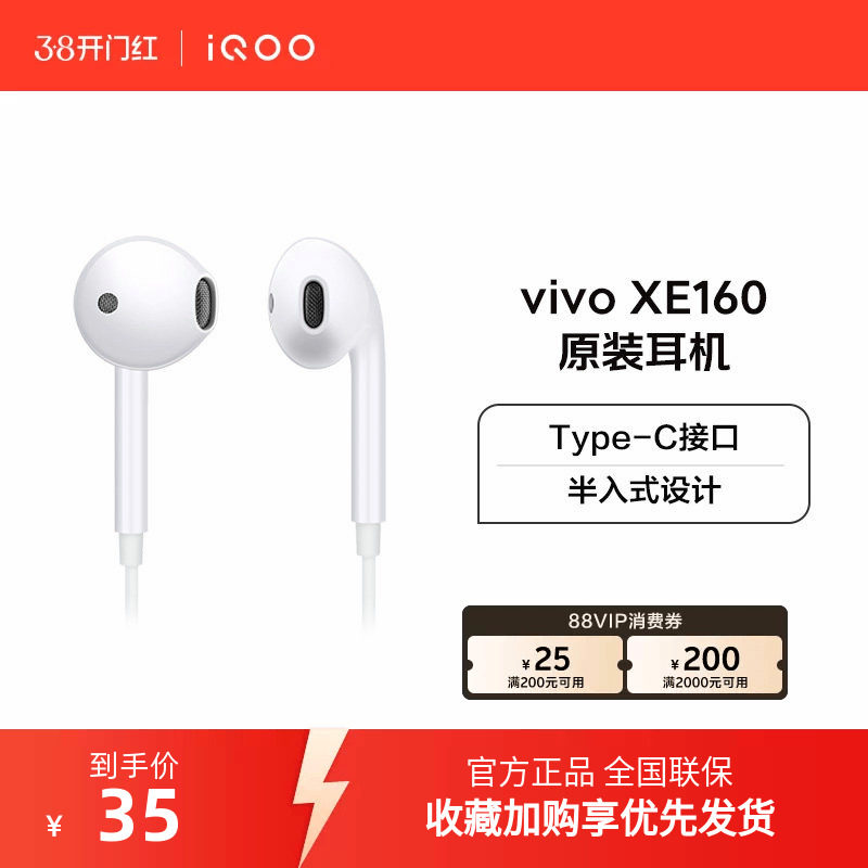 vivo XE160 XE710原装有线耳机type-c接口高音质官方旗舰店正品
