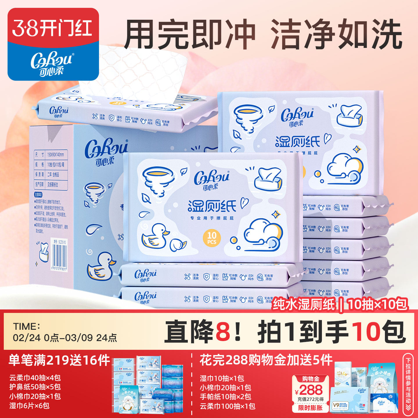 可心柔湿厕纸女性专用便携式如厕柔湿巾小包可冲散代替抽纸10片10