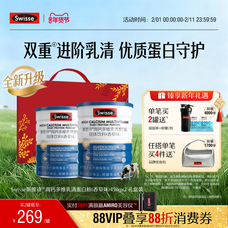 Swisse斯维诗高钙乳清蛋白粉益生元维生素自护力营养官方旗舰店
