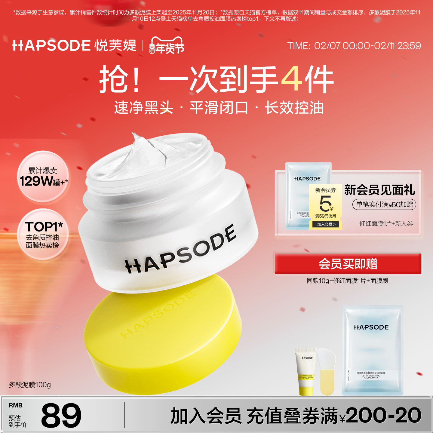 悦芙媞多酸清洁泥膜深层清洁油皮面部去黑白头收缩毛孔白泥面膜