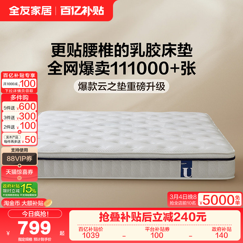 全友家居进口乳胶床垫卧室软硬适中双人椰棕席梦思180x200床垫子