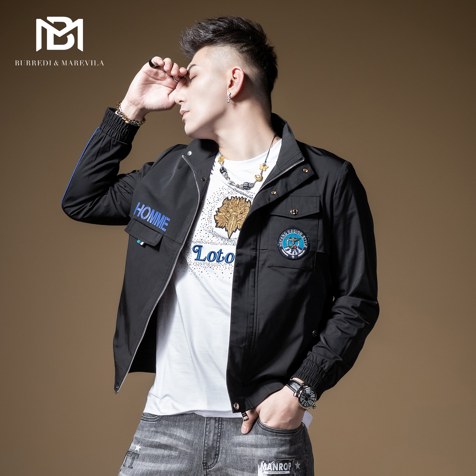 BM痞帅炸街外套2021年新款男春季薄款潮流刺绣休闲工装飞行员夹克
