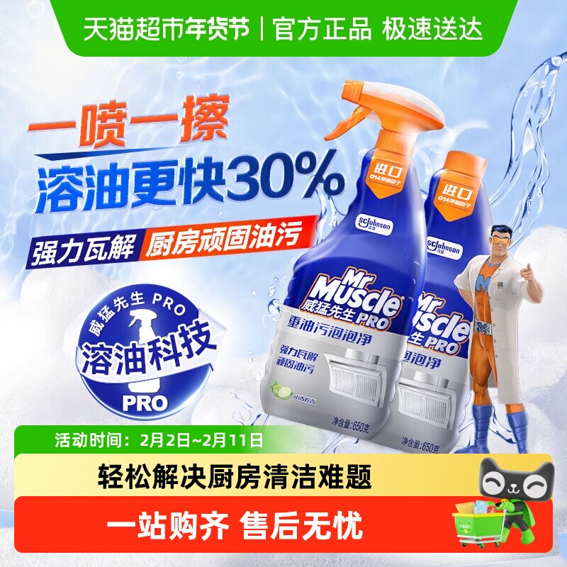 威猛先生重油污泡泡净650g*2横扫污垢不伤器具泡沫溶油更快不刺鼻