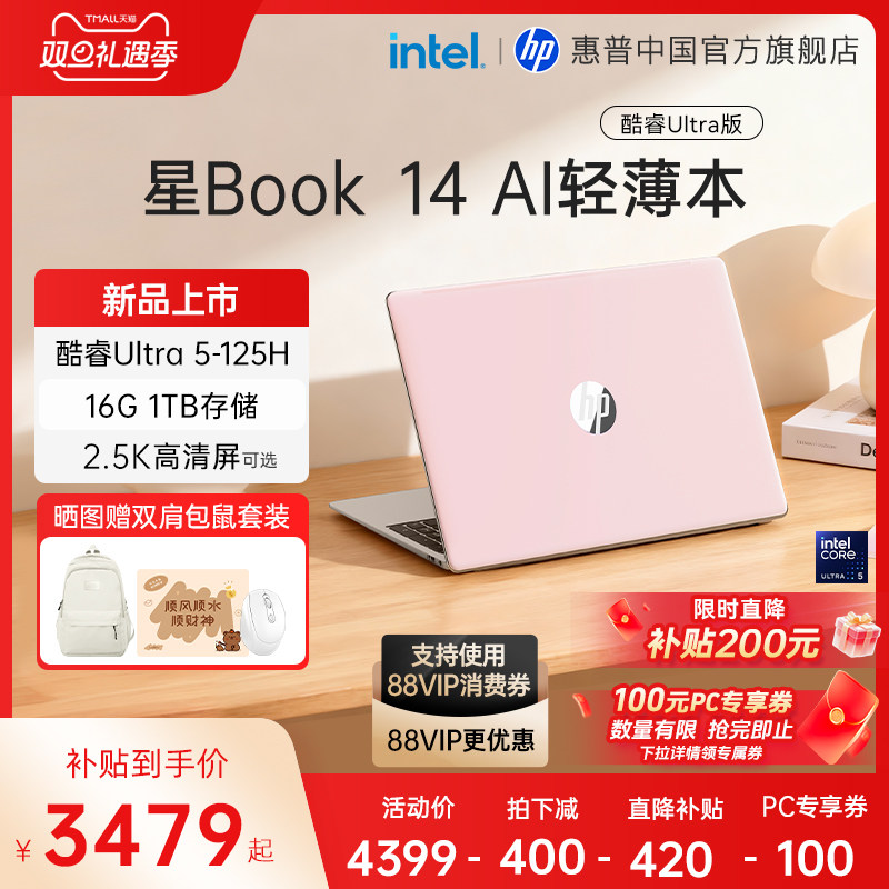 【限时补贴+PC专享券+88VIP+4%全国补贴】HP/惠普可选星Book14英
