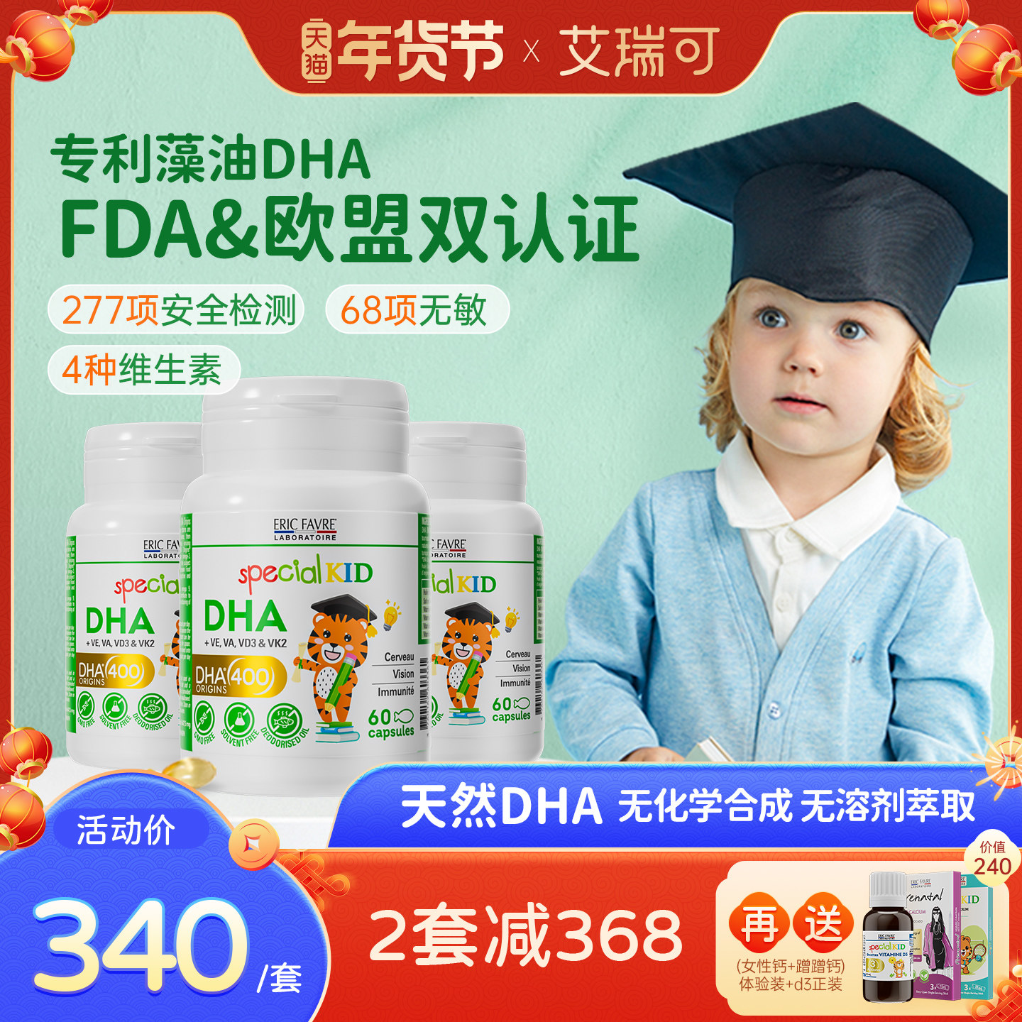 艾瑞可儿童专利DHA藻油婴儿专用宝宝婴幼儿海藻油3瓶