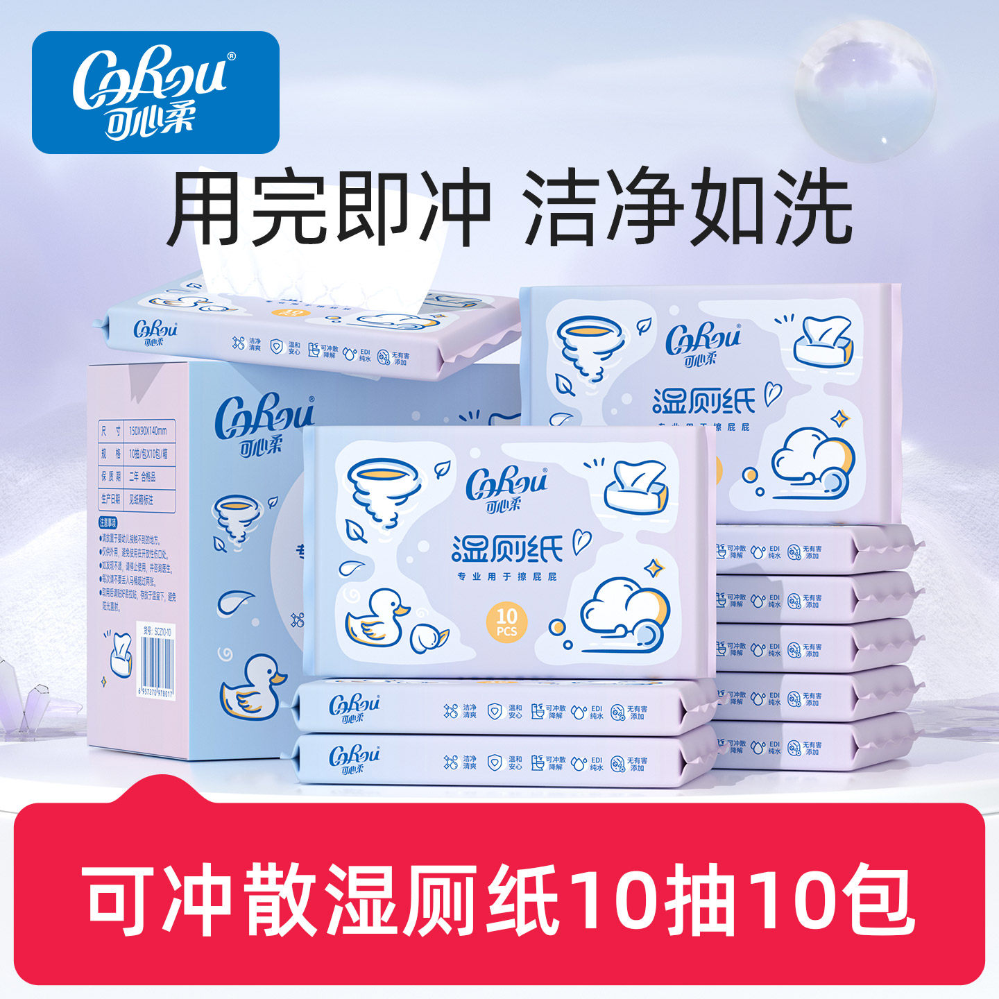 可心柔湿厕纸女性专用便携式如厕柔湿巾小包可冲散代替抽纸10片10