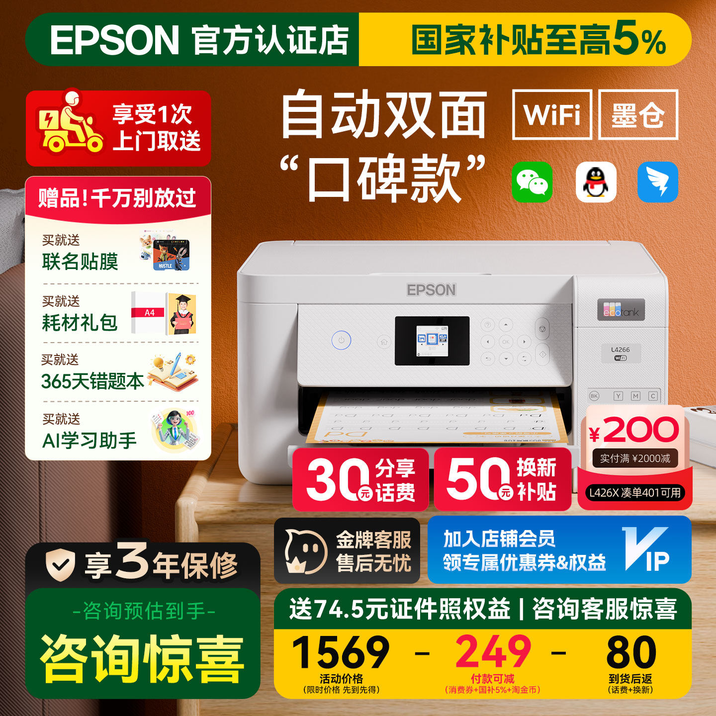 【政府补贴】爱普生墨仓式打印机自动双面家用小型L4266/4268/4263彩色