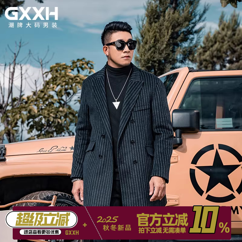 GxxH大码潮牌男装冬季毛呢大衣肥佬加肥加大中长款西装领风衣外套